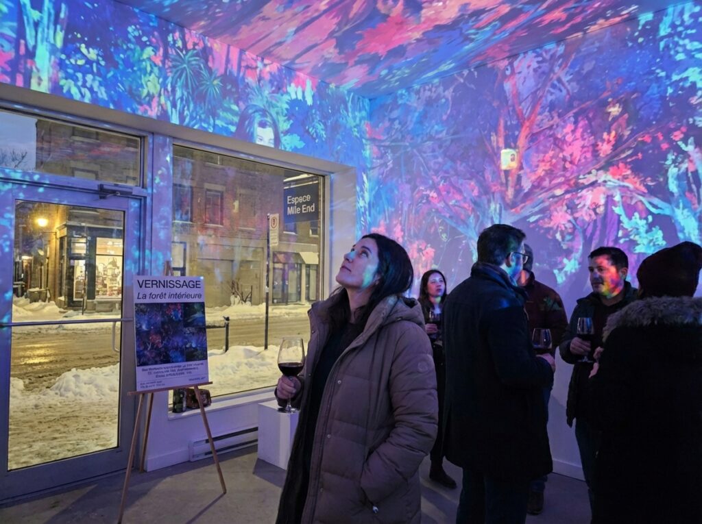 Espace Mile‑End, a coworking space well known for its welcoming vernissages, hosts one of the most convivial openings of winter 2026. Visual artist Sara Rodriguez, originally from Spain, presents La forêt intérieure, a body of work inspired by nature and inner landscapes.